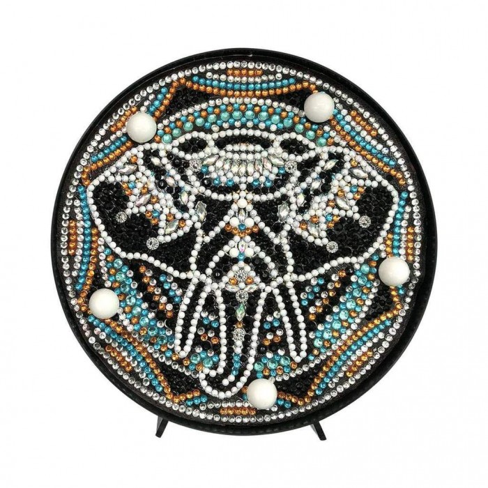 Rond DP Lampje Mandala Zwarte Olifant Diamond Painting