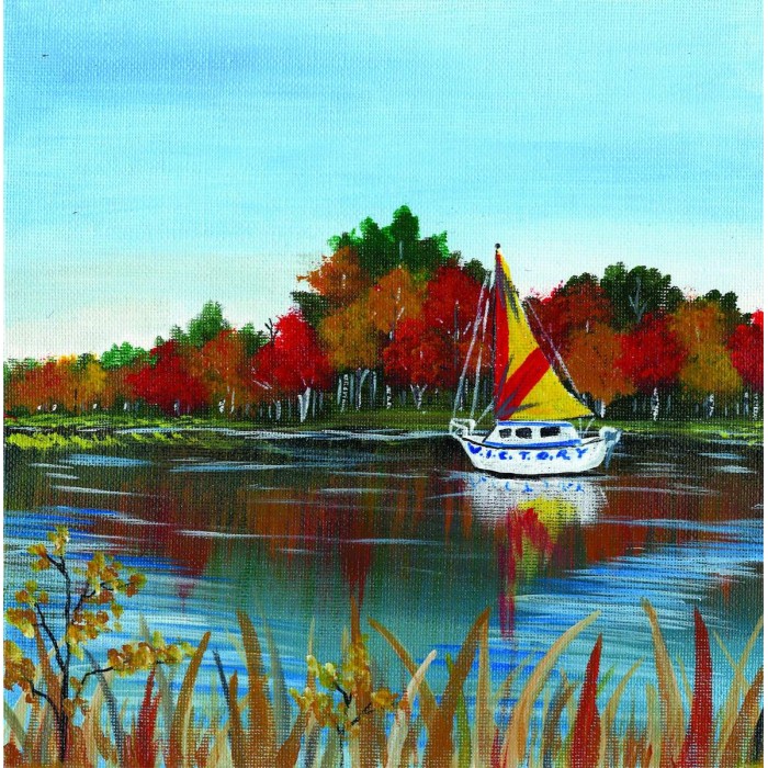 Boot op een meer in de herfst Diamond Painting