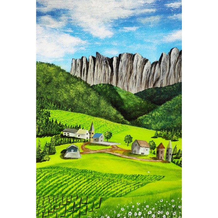 Dorp naast de berg Diamond Painting