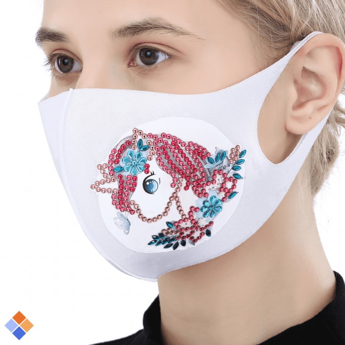 Mondkapje Eenhoorn | Wit Diamond Painting
