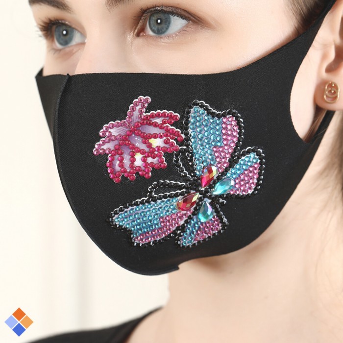 Mondkapje Vlinder met Bloem Diamond Painting
