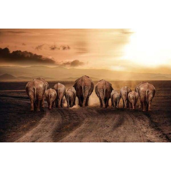 Olifanten Familie Onderweg Diamond Painting