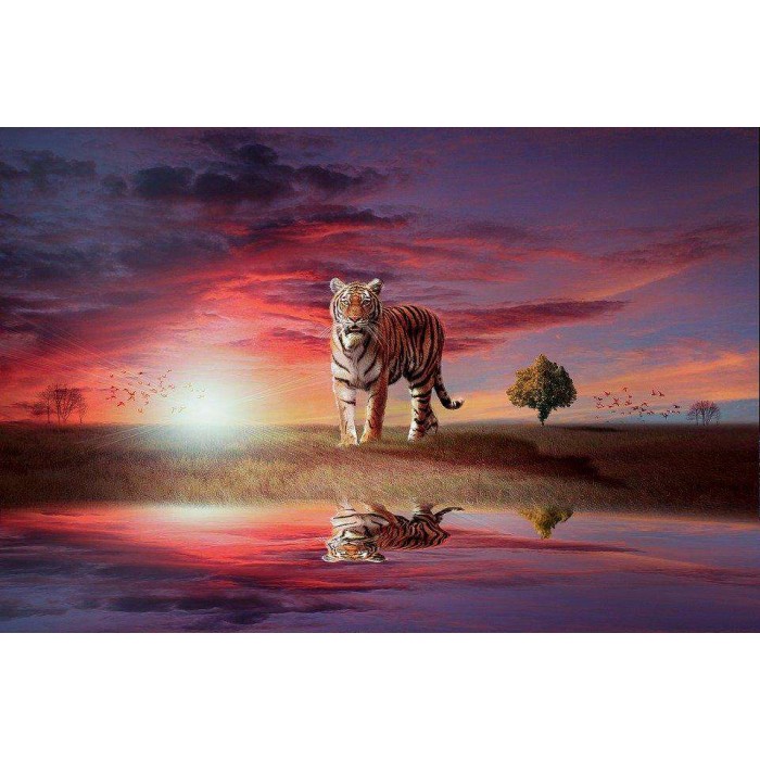 Tijger Spiegelbeeld in Zonsondergang Diamond Painting