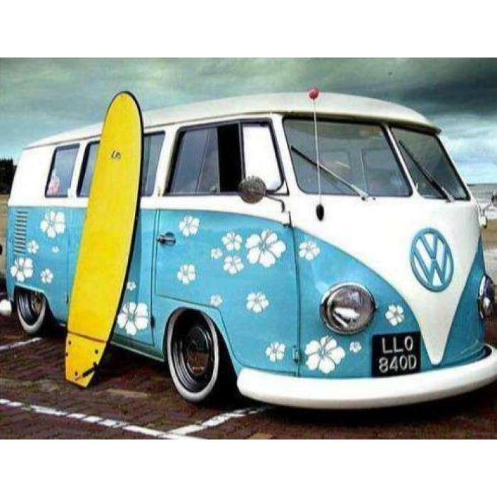 Blauwe Busje met Geel Surfboard Diamond Painting