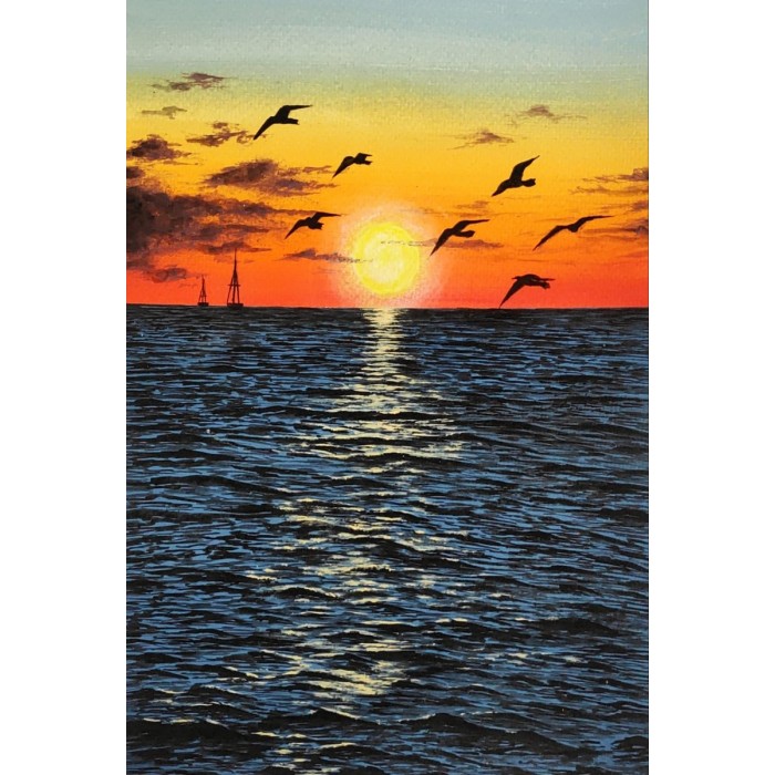 Vogels over Zee bij Zonsondergang Diamond Painting