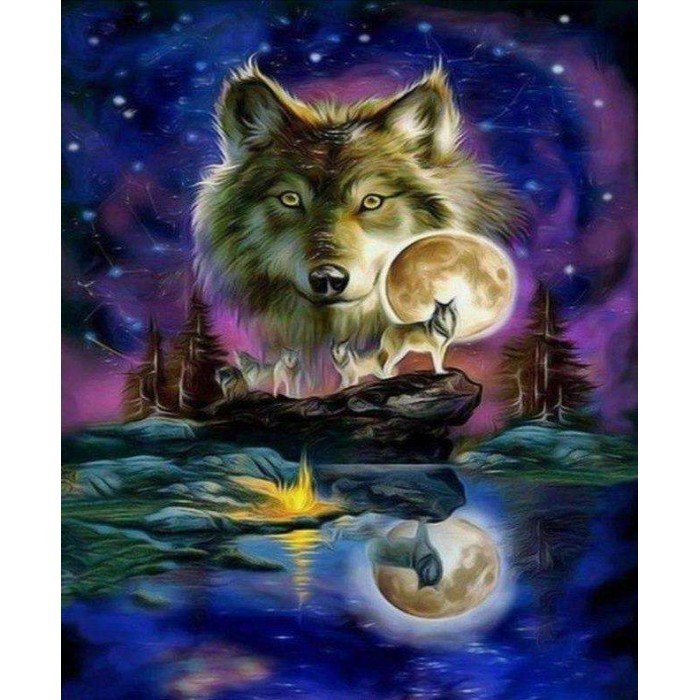 Wolf bij Volle Maan Diamond Painting