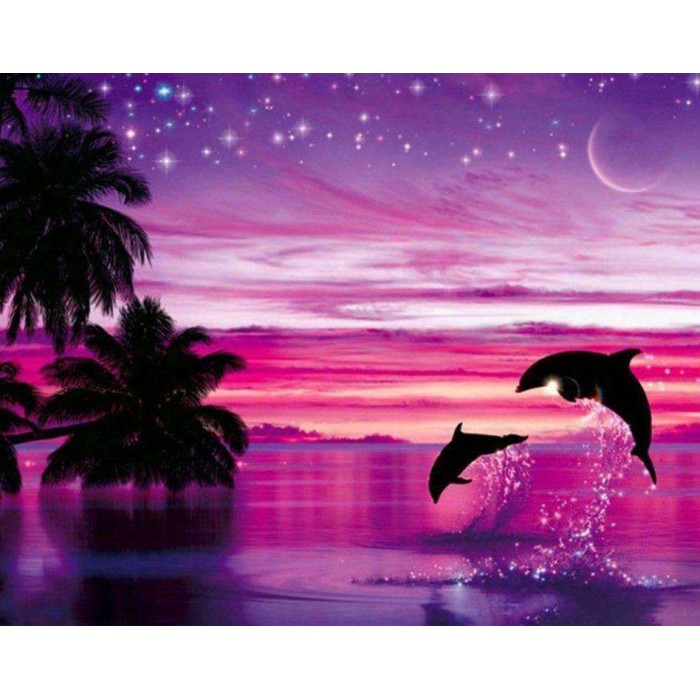 Dolfijnen Paarse Lucht Diamond Painting